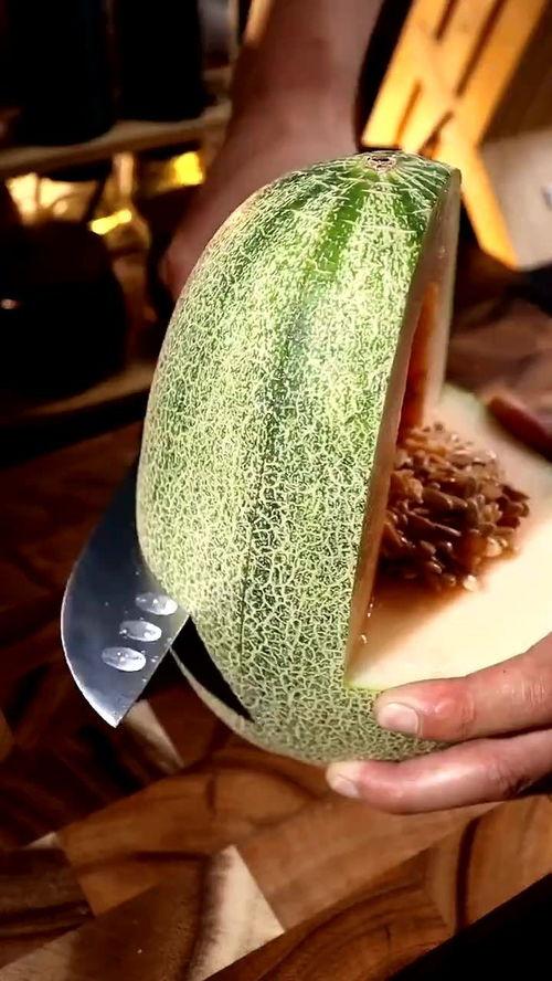选好了哈密瓜,接下来就是切瓜环节了。这里有个小技巧,可以让你的哈密瓜切得又快又好。首先,用刀在哈密瓜的蒂部切一个小口,然后沿着瓜的长度方向切一刀,但不要切到底。接着,将哈密瓜翻转过来,用刀沿着瓜的宽度方向切一刀,这样就可以轻松地将哈密瓜分成两半。用勺子将瓜瓤挖出来,再切成你喜欢的形状。